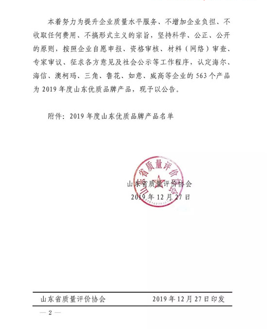 12月27日,山東省質(zhì)量評價協(xié)會發(fā)布了2019年度山東優(yōu)質(zhì)品牌產(chǎn)品和2019年度山東優(yōu)質(zhì)品牌服務(wù)的公告名單。山東萌山鋼構(gòu)工程有限公司的“裝配式鋼管混凝土異形柱鋼結(jié)構(gòu)”榮獲2019年度山東優(yōu)質(zhì)品牌產(chǎn)品!